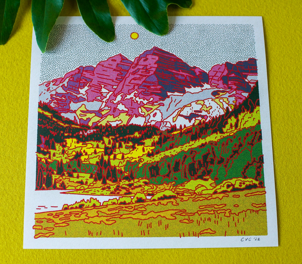 This print was designed and made by Caroline Clark of Long Lost Studio in Colorado Springs, Colorado who has this to say bout her work: