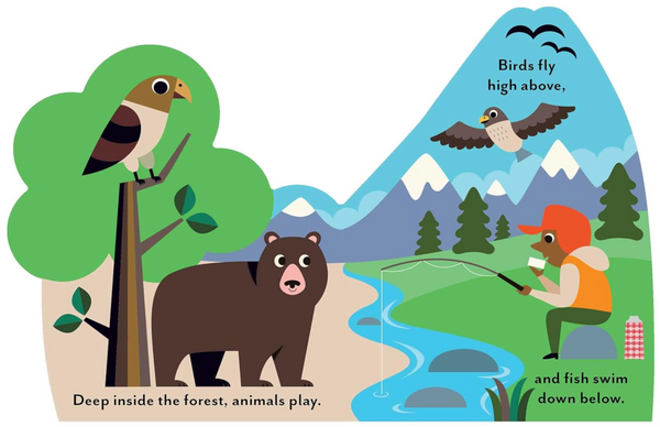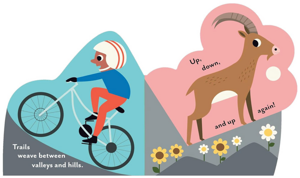 Hike beside mountain lakes, pedal down rocky hillsides, and swoop across snowy ski slopes in this one-of-a-kind board book by celebrated illustrator Ingela P Arrhenius. Each uniquely shaped page overlaps with the next to create a complete landscape when closed—and an immersive world to explore when open. Simple text and vibrant illustrations introduce babies and toddlers to the many ways of enjoying time in nature. Delightfully petite, Bookscape Board Books' chunkiness and unique layers give them a tactile, toylike quality that begs to be picked up—making each book in the series a memorable and irresistible gift.