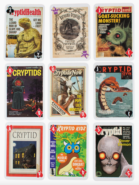 Each card features a different cryptid or legendary creature as the star of its own magazine cover—from the elusive Bigfoot, to the equally as elusive Yowie, to the also extremely elusive Mothman and beyond.