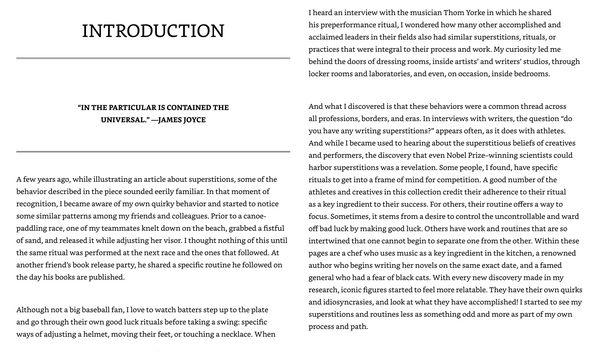 What did Maya Angelou do to keep the words flowing? What is a NASA engineer's lucky charm? How does Thom Yorke prep for a concert? This book bottles the singular recipes for success of leading creatives, politicians, scientists, and athletes who made their own luck.