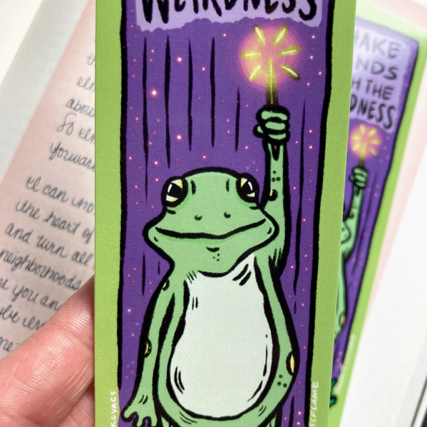 This classic bookmark features original artwork by Natalie Kovacs of ShapelessFlame. - Printed on high quality, glossy card stock- Dimensions: 2″ x 6”