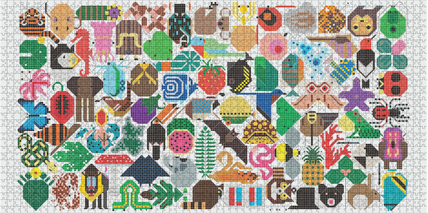 Harper’s entire mural, made of thousands of small tile squares, is reproduced on the included key. All of the identified species are depicted on this delightfully challenging 2000-piece jigsaw puzzle.