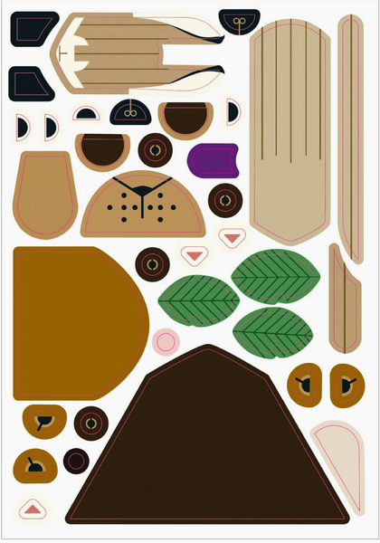 This sticker kit gives you the opportunity to piece together these geometric shapes to re-create his wild creatures.