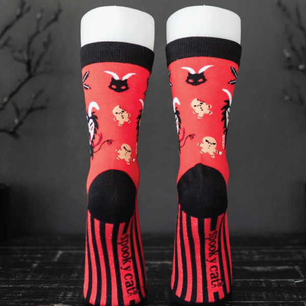 Step into festive fright with our Cute Krampus Creepmas Socks from Spooky Cat Press, featuring a devilishly adorable design perfect for Creepmas mischief.