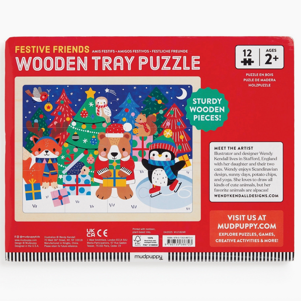 Jingle all the way to puzzle fun with this Festive Friends 12 Piece Wooden Tray Puzzle!