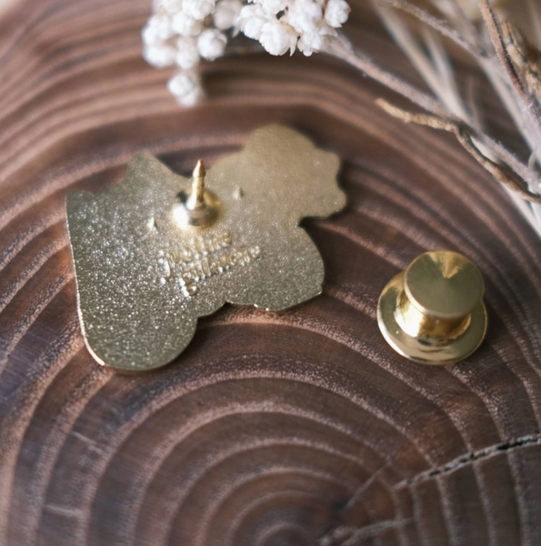 Dimensions: .81" x 1.13" Includes a deluxe locking pinback