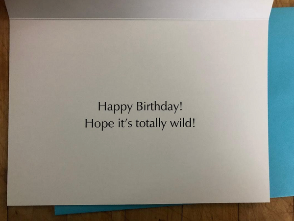 Inside greeting: "Happy Birthday! Hope it's totally wild!"