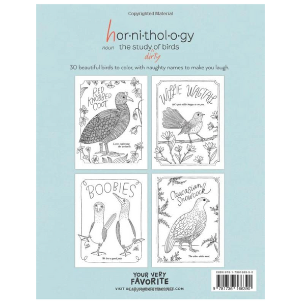 This book is the ULTIMATE in stress relief as you combine coloring with off-color humor. Each page also features a joke that plays off the name of the bird.
