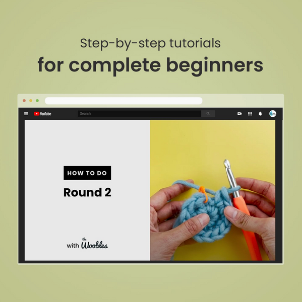 In addition to the video tutorials, the kit includes everything you need to get started on your crochet journey.