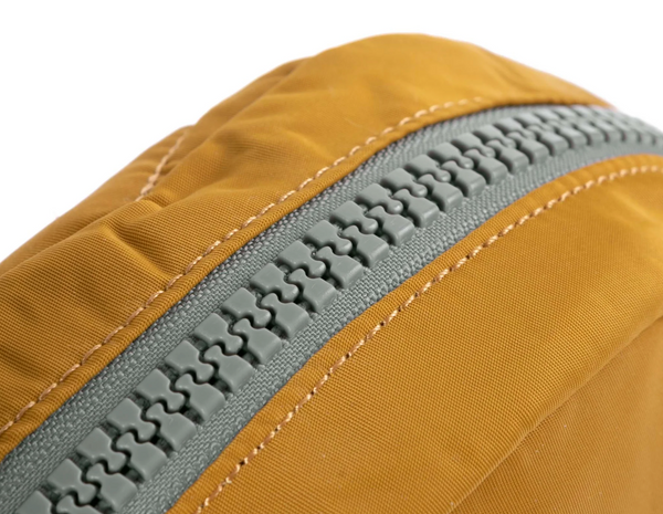 - Outer material: Weather-resistant recycled nylon (triple-coated)