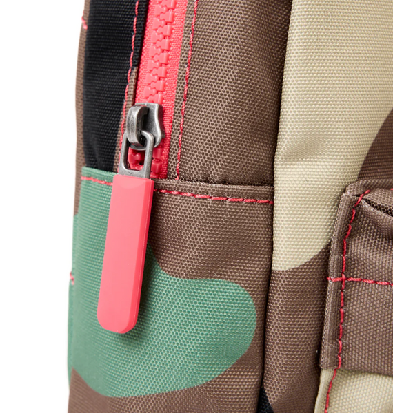 With a spacious main compartment, two secret pockets, and a comfortable over-the-shoulder strap, you'll have room for a laptop, your cell, keys, wallet and more. And the bold chunky zips and weather-resistant recycled material gives a smooth look and finish to take on any day, rain or shine!