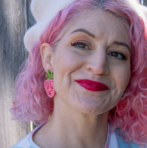 These cute pink strawberry face earrings are one of the newest additions to the Plant Life Collection from Darling Marcelle, which pairs famous faces from history with fruits and vegetables.