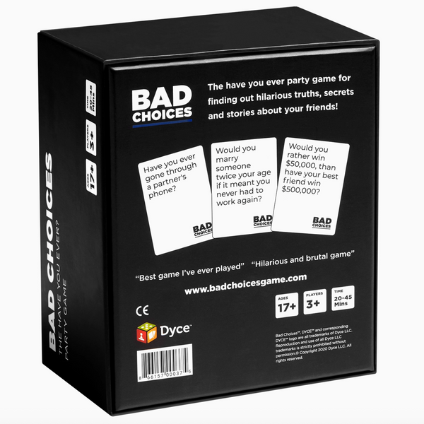 HILARIOUS GAME: Bad Choices is the next level combination of ‘Never Have I Ever’ and ‘UNO’. This is the ultimate game for finding out hilarious truths, secrets and stories about your friends.