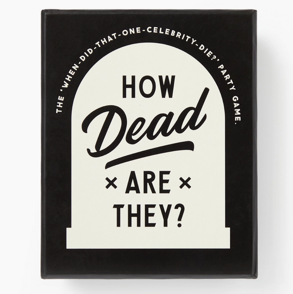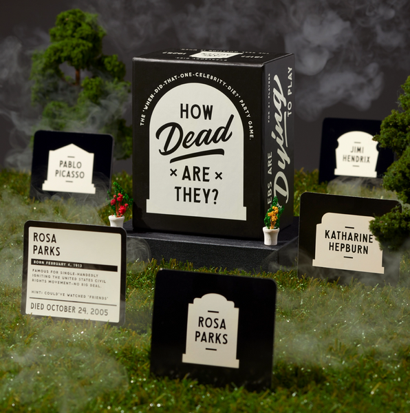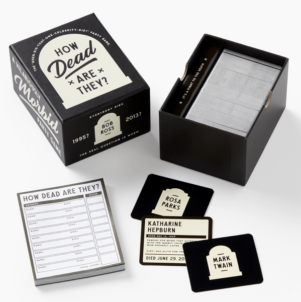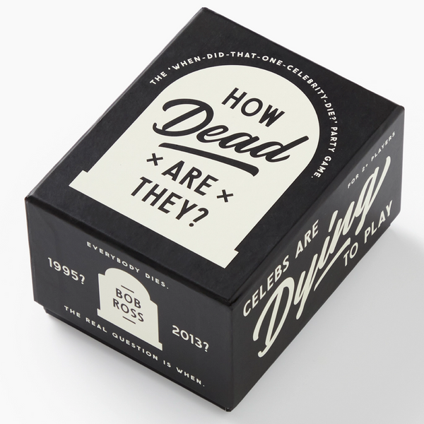 A ‘when-did-that-one-celebrity-die?’ party game. How often have you had to sheepish-ily google ‘Is (insert notable person’s name here) still alive?’ Yeah, us too. In fact, we do it sooo much around our office–we turned it into a game!