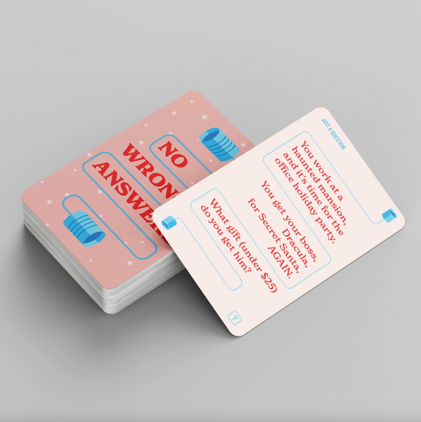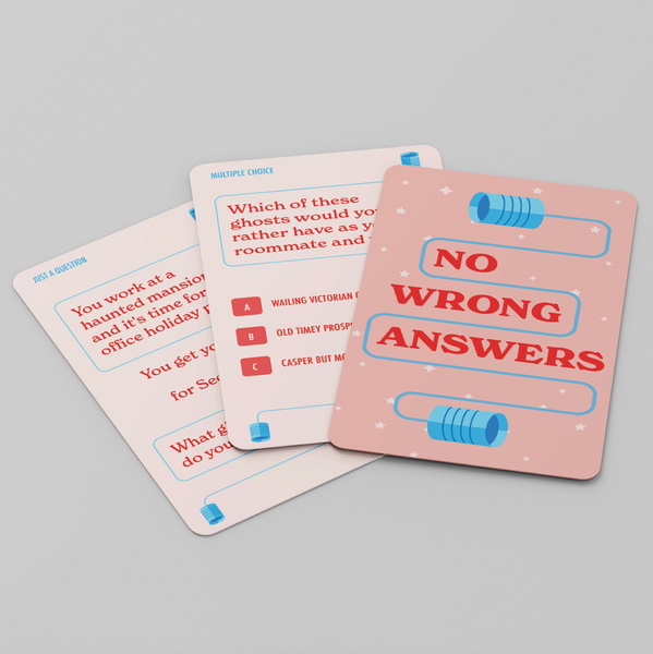 No Wrong Answers is a card game where friends and family can discuss life’s least pressing and most important questions. Don’t want to talk about the weather or politics? Debate which cereal mascot would be the best kisser or what you’d eat if your teeth were indestructible - remember, there’s No Wrong Answers!