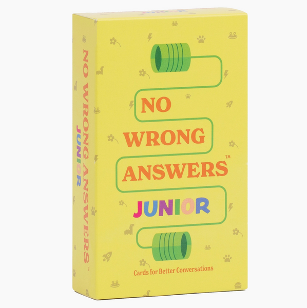 No Wrong Answers: Junior has 70+ prompt cards that kids and grown-ups will love, like "The person to your left just ate a radioactive sandwich, and they now have a superpower! What's their power?"