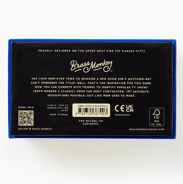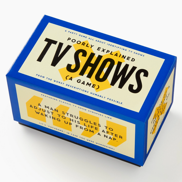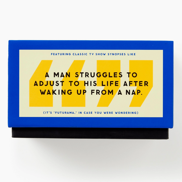 - Includes 300 cards, featuring a uniquely-terrible description of a TV show.