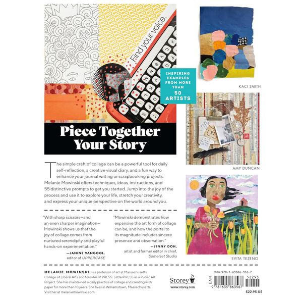 In Collage Your Life, artist and teacher Melanie Mowinski teaches a variety of core techniques including lettering, stamping, stenciling, transfers, and adhesive methods, and provides dozens of prompts to jumpstart the creative process and encourage crafters to explore the versatility of collage, such as: make a self-portrait; disrupt your routine instincts; incorporate text; assemble mementos from a trip; process anger or anxiety; collage with others; or try creating block-out poetry with pages from a magazine. Inspiring examples of the author's work along with that of other collage artists are featured throughout.