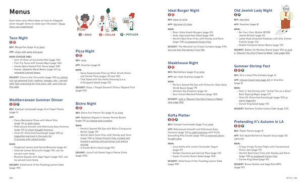 Forget fussy recipes with ingredients lists that run a mile long. With sections on appetizers, main dishes, drinks, sides, and desserts, Feldman provides easy recipes for every mood and cooking comfort level (including pizza parties, taco nights, and permission to order takeout). Whimsical illustrations help demystify the cheese plate, offer store-bought dessert options, and guide you to your ideal dinner menu; tips within each recipe ensure great results and help you with party planning to avoid last-minute scrambling.
