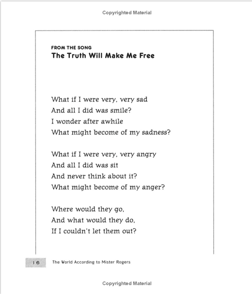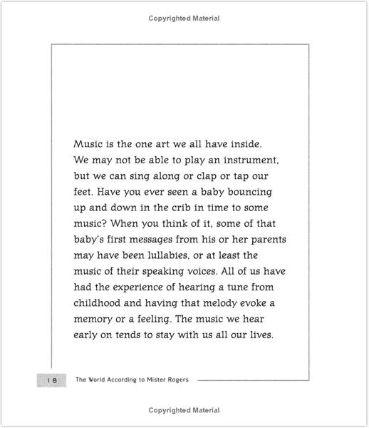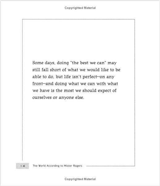 There are few personalities who evoke such universal feelings of warmth as Fred Rogers. An enduring presence in American homes for more than thirty years, his plainspoken wisdom continues to guide and comfort many. The World According to Mister Rogers distills the legacy and singular worldview of this beloved American figure. An inspiring collection of stories, anecdotes, and insights—with sections devoted to love, friendship, respect, individuality, and honesty—The World According to Mister Rogers reminds us that there is much more in life that unites us than divides us.