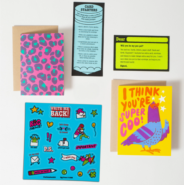 Write Me Back! Pen pal kits make it super easy to write to a friend, and for them to write you back. When you send your card, you'll also send a miniature card and envelope, so your friend can write back to you, right from their mailbox!