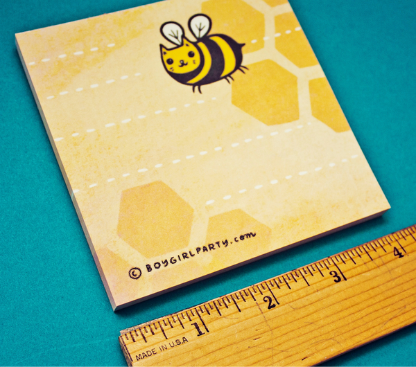 This sweet cat bee memo notepad by Boygirlparty will brighten up your notes to self and others. - 50 sheets of full color artwork- Measures 4" x 4" Original design and illustration by Susie Ghahremani.