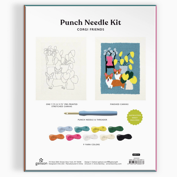 Create charming textile art with the Corgi Friends Punch Needle Kit, designed by Anne Bentley.