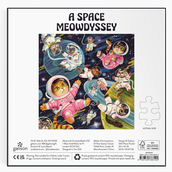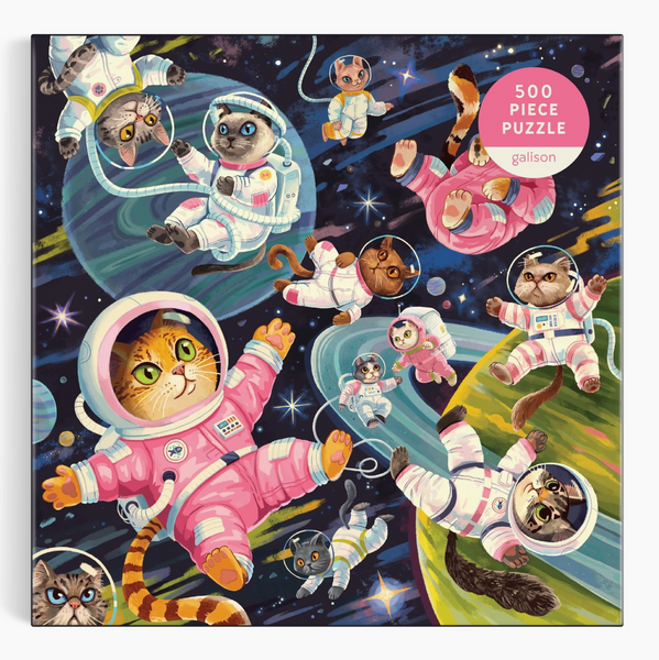 Embark on a cosmic adventure with this whimsical 500-piece puzzle featuring the imaginative artwork of Lucia Baertl.