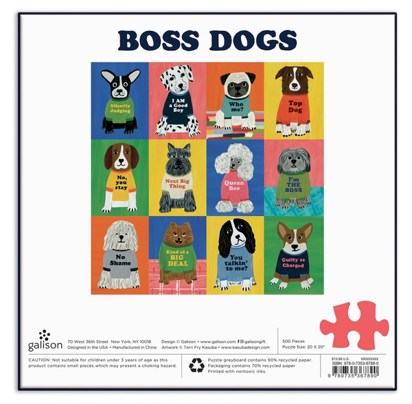 This 500-piece puzzle from Galison highlights the many boss levels that our four-legged companions can achieve! This puzzle is fun for the whole family! Galison puzzles are packaged in matte-finish sturdy boxes, perfect for gifting, reuse, and storage.