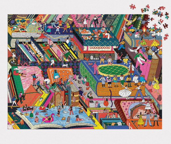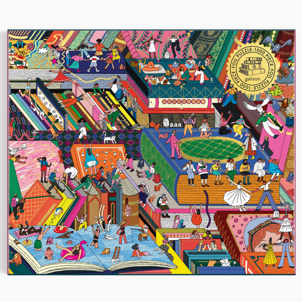 The Novel Neighborhood 1000 Piece Foil Puzzle features your favorite fictional characters come to life in this challenging and colorful puzzle from Galison. The foil embellishments bring a touch of glamour as puzzlers work to complete this puzzle piece by piece. Galison puzzles are packaged in matte-finish sturdy boxes, perfect for gifting, reuse, and storage.