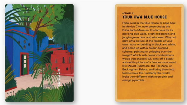 Explore Frida Kahlo’s art, life, and home in this interactive artist box, featuring twenty-four activity cards, a 150-piece jigsaw, a concertina foldout, and an iron-on patch.