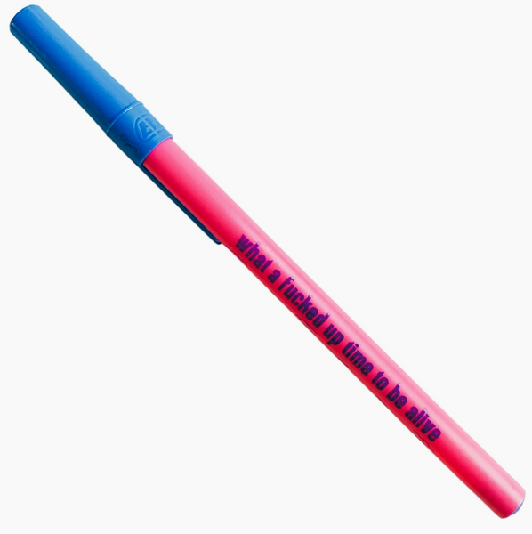 Give your written words a modern, Gen Z aesthetic with this What A Fucked Up Time To Be Alive Ballpoint Pen.Details: - Ballpoint - Fine point - Blue ink - Sold individually