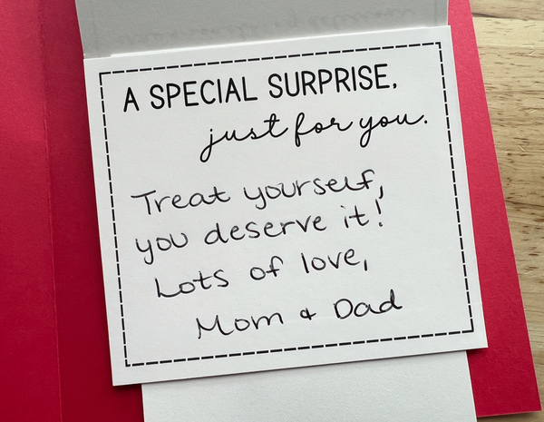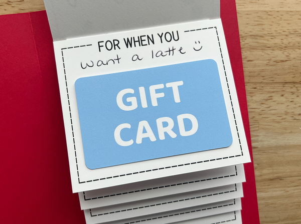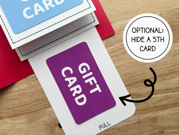 This unique fold-out card reveals four spots for gift cards - perfect for celebrating someone special, one surprise at a time.