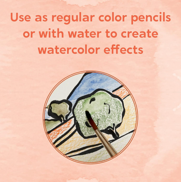 This eye-catching set of ten unique pencils creates vibrant hues, whether used as regular color pencils or combined with water to create watercolor effects.