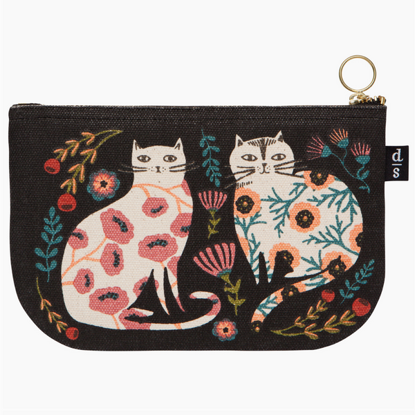 A small zipper Catbloom pouch made from sturdy 100% cotton is perfect for storing small accessories, travel essentials and more.